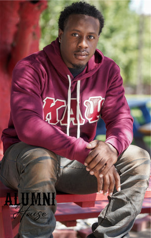 Greek Letter Kappa Alpha Psi on chest of these Next Level Single-Pocket Hoodies.